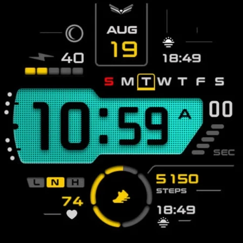 LEVAR — это современный цифровой циферблат для Wear OS с 5-секундным циклом счётчика. Ballozi Levar был впервые разработан для Tizen, а теперь доступен и на Wear OS с множеством настроек.