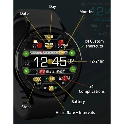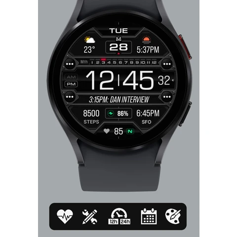 Просто шикарный цифровой циферблат с кучей настроек и информации.