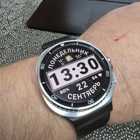 Цифровой циферблат с минимум иноформации в огромном значении для удобства.