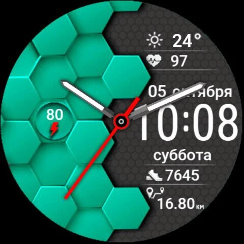 пульс- пульс, дата-календарь, часы-настройки, минуты-будильник, шаги-шаги, заряд-расход аккумулятора.